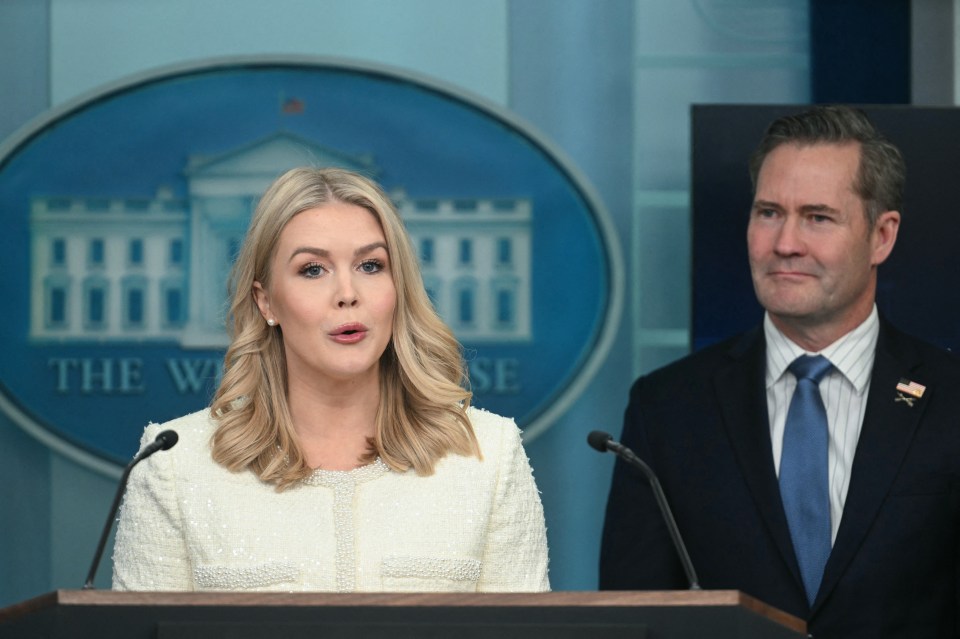 Dressed in her usual sparkly white color, Leavitt explained more on this front and celebrated the president’s first month of the second term during a briefing with some guests including National Security Adviser Mike Waltz and Deputy Chief of Staff Stephen Miller.