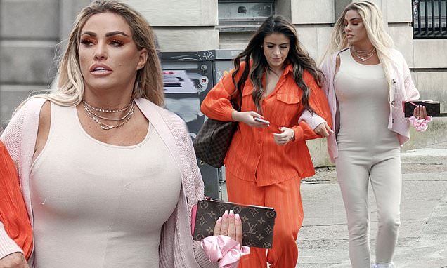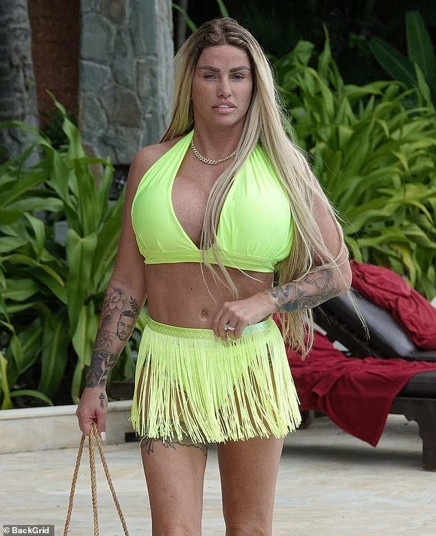 In one picture, Katie can be seen posing with her arms up in the air and right above her head. Her assets were witnessed bulging out of the skintight look.