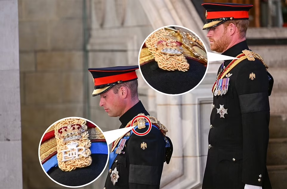 It was later revealed, however, that the ‘ER’ initials, which stand for Elizabeth Regina and represent the longest-reigning British monarch in history, were removed from Harry’s uniform even though Prince Andrew was permitted to wear the Royal Cypher at an earlier vigil.