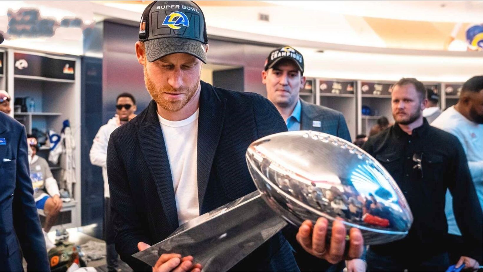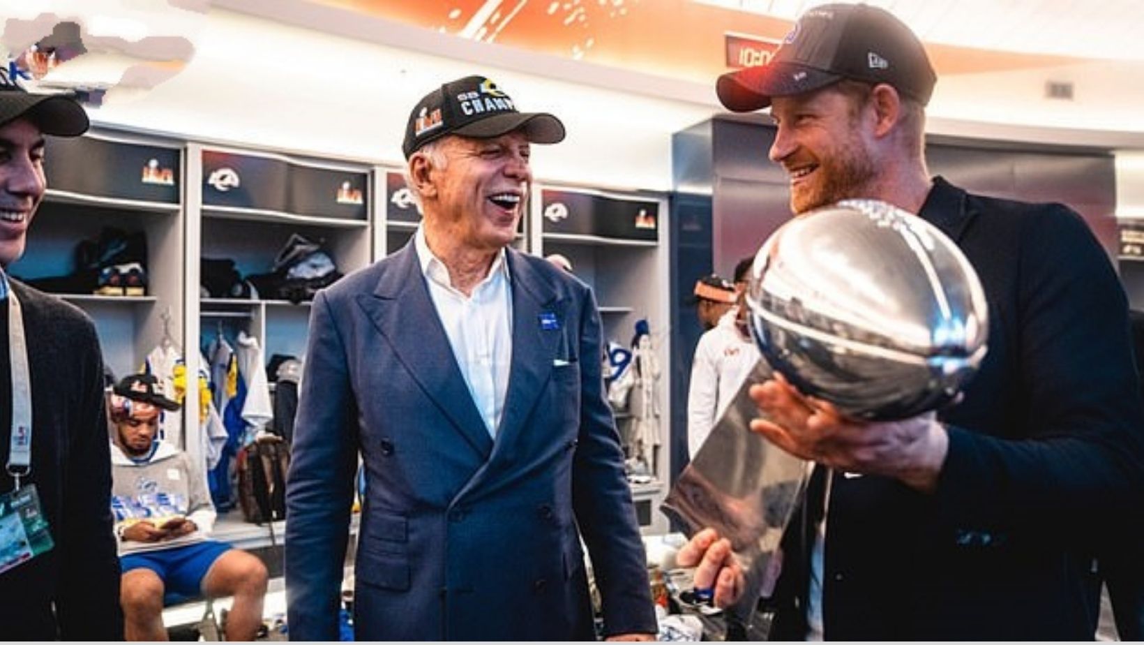 LA Rams posted a photo of Prince Harry Holding the gleaming trophy in the locker room after their match with the caption “Feelin’ like royalty” last Tuesday, February 15, 2022.
