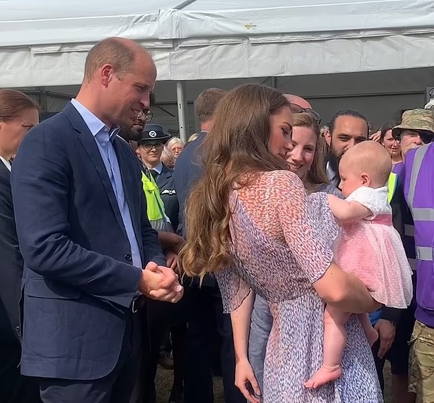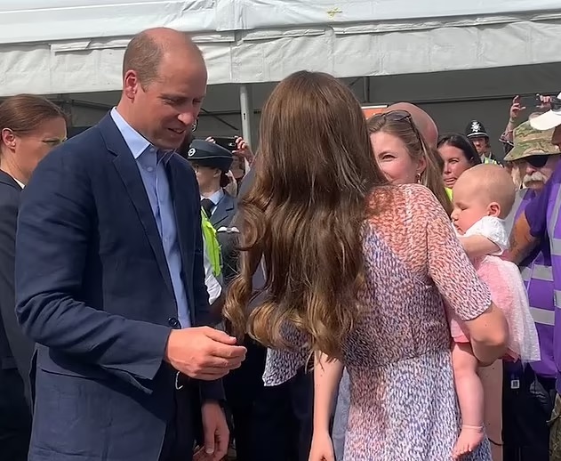 Prince William has seemingly revealed his weakness as he was spotted nervously tapping his wife Kate on the arm after she picked up a fan’s baby and professed that she loves babies.