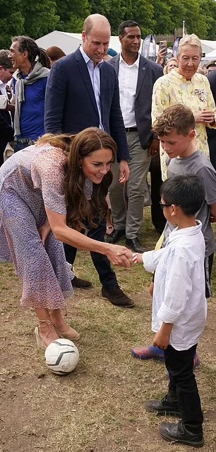 While the Duchess seemed to be in no hurry, William awkwardly approached her and tapped her arm to let her know he wanted to move on.