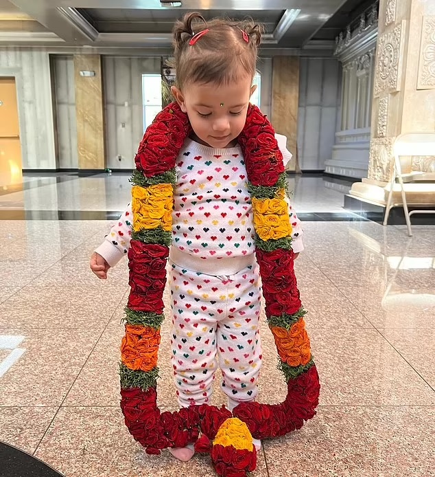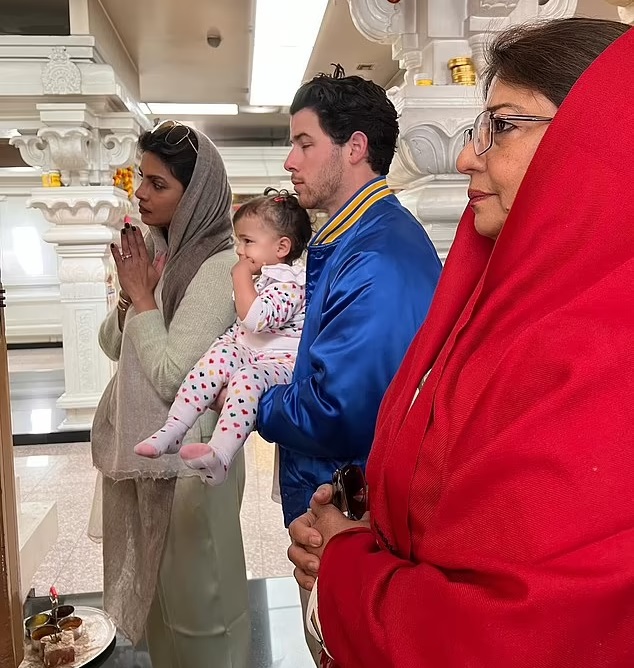 In another, she, her parents, and Priyanka’s mother Madhu are seen praying during a temple visit.