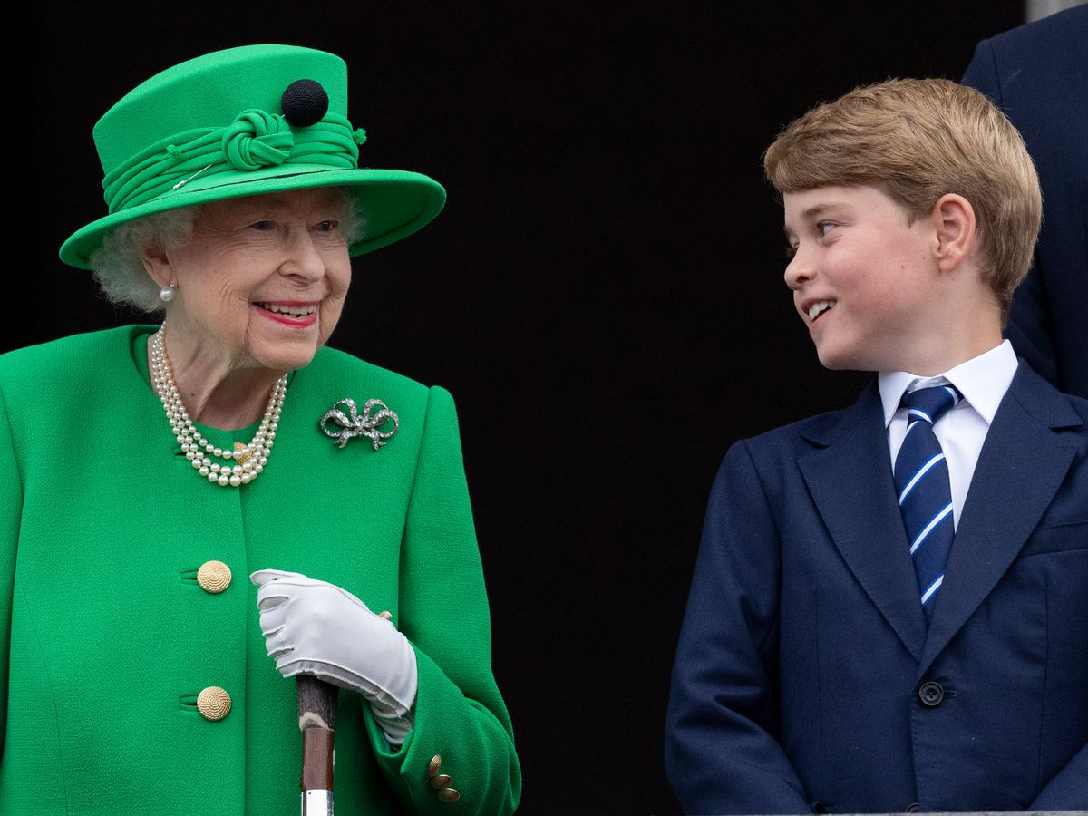 The heartwarming image featured Prince George beaming with a giant smile across his face as he accompanied her Majesty and could be seen sharing a hilarious moment together that made the duo laugh.