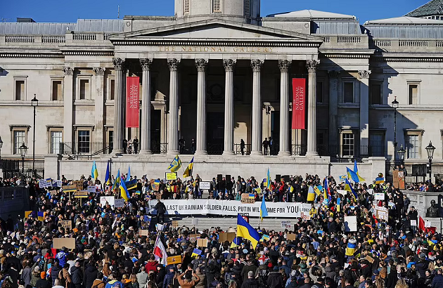 In Madrid, protesters gathered holding Ukraine flags and banners accusing Putin of acting like Hitler. People in South Korea’s Seoul also staged a demonstration outside the embassy of Russia.