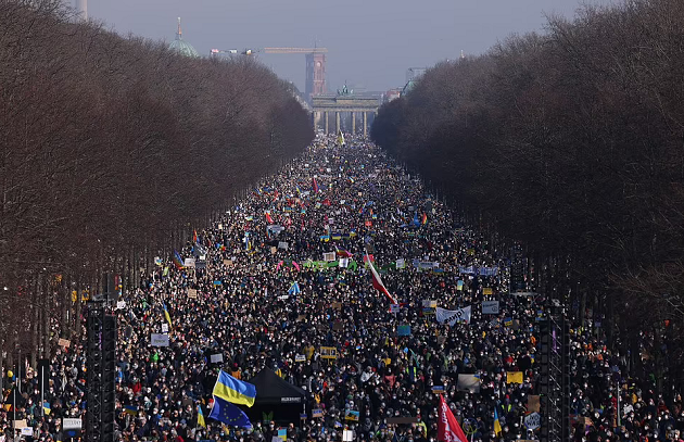 Hundreds of thousands of protesters took to the streets to demand an end to the war Russian President Vladimir Putin has waged on Ukraine.