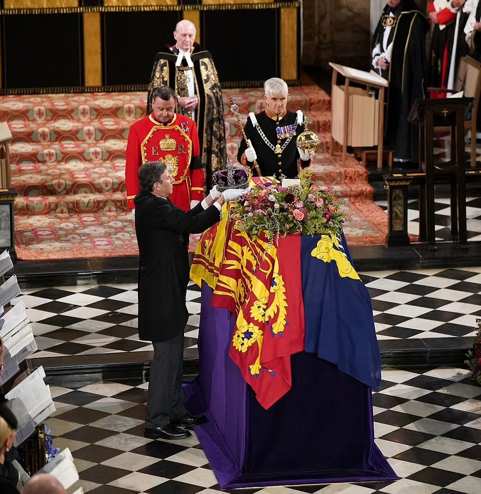 During the burial, Her Majesty’s crown, scepter, and orb were removed from the top of her coffin to allow the Queen to descend into the burial chamber “as a simple Christian soul.”