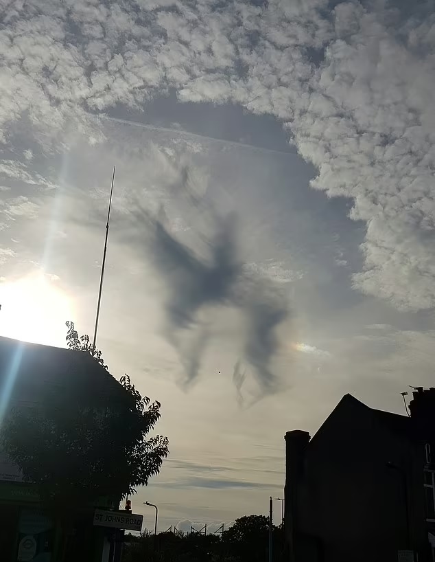Another cloud formation – this one resembling the Queen riding a horse – was caught on camera by 37-year-old Eki Eguae in Wembley, London.