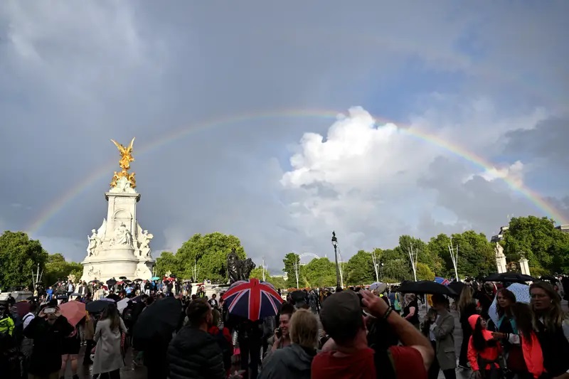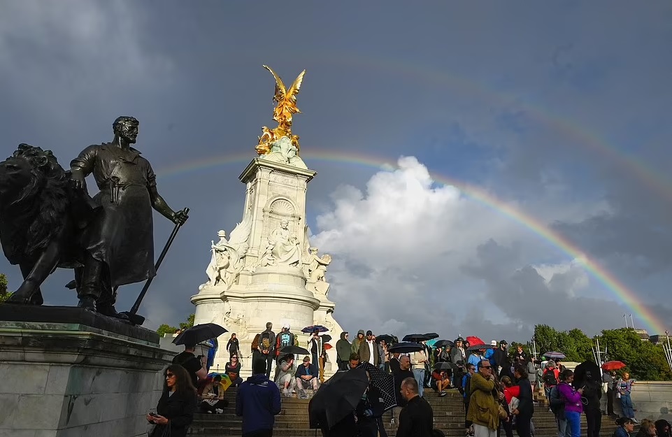 As mourners were praying and grieving for the Queen, a double rainbow appeared in the sky above Buckingham Palace. Another rainbow popped up at Windsor Castle.