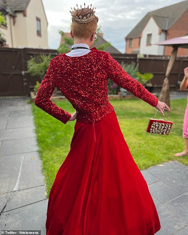 But one young schoolboy left Twitter in a state of absolute frenzy when he chose to show up to the memorable event in a sequined tuxedo jacket, paired well against a bold and vibrant red ballgown skirt.