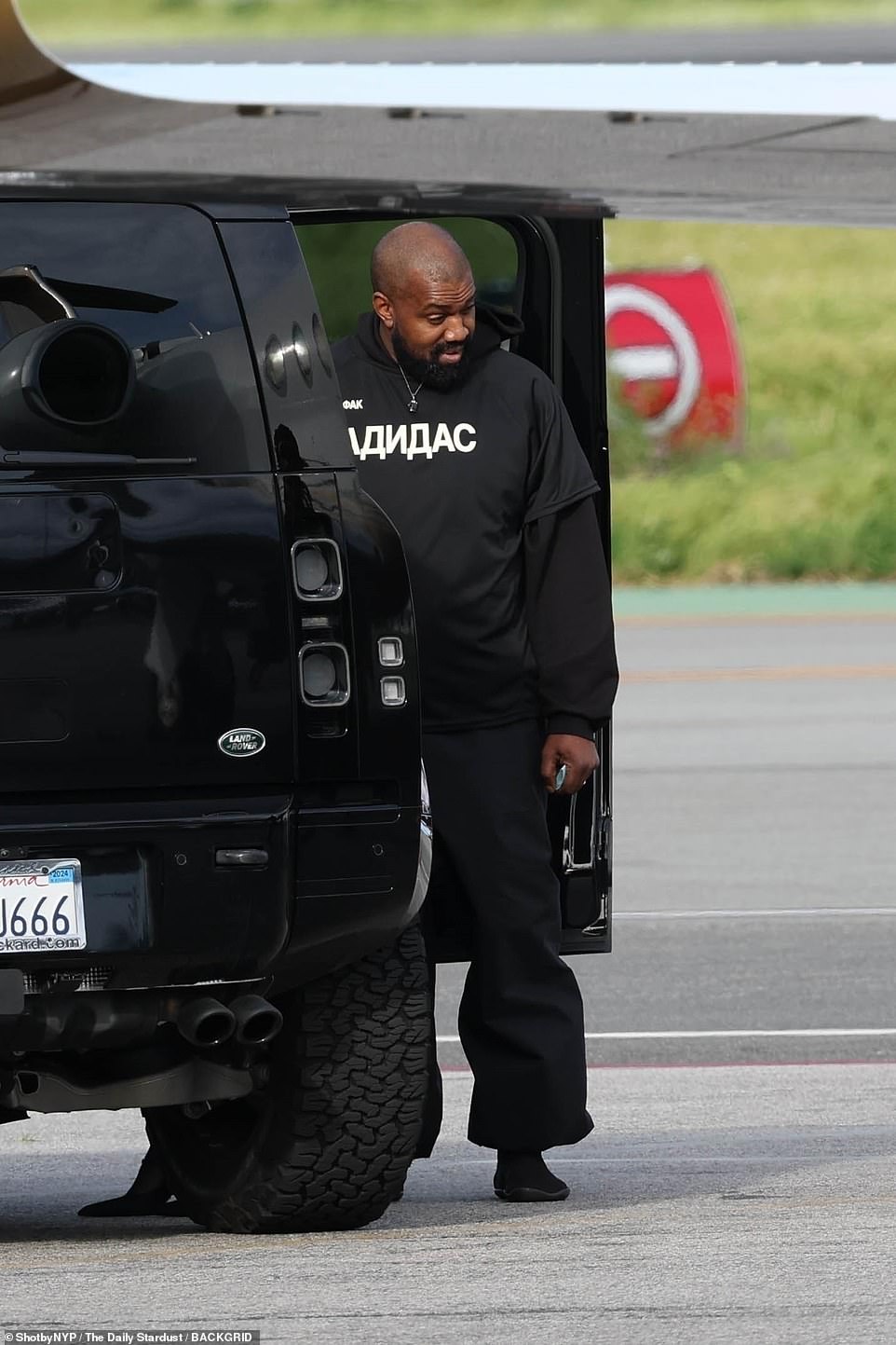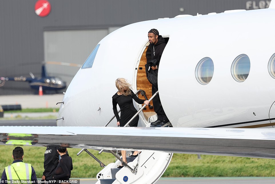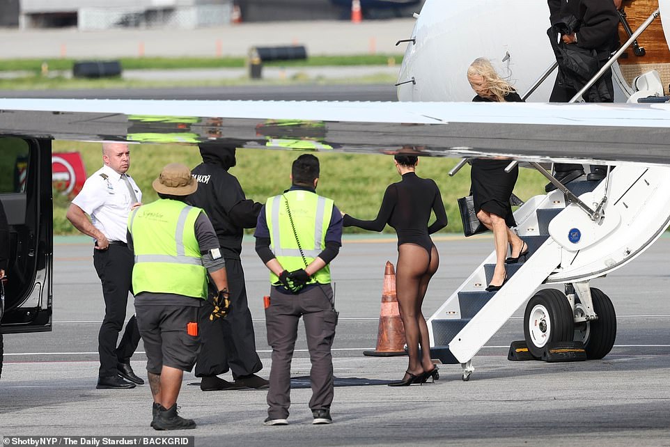 Kanye West and his wife Bianca Censoir were spotted getting off a private jet with the latter’s mother by their side.
