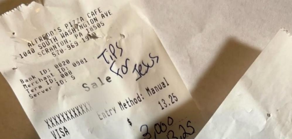 Mariana Lambert, who works at Alfredo’s Pizza Café, was overjoyed when a customer left her a $3,000 tip using his credit card after placing an order that cost just $13.25.
