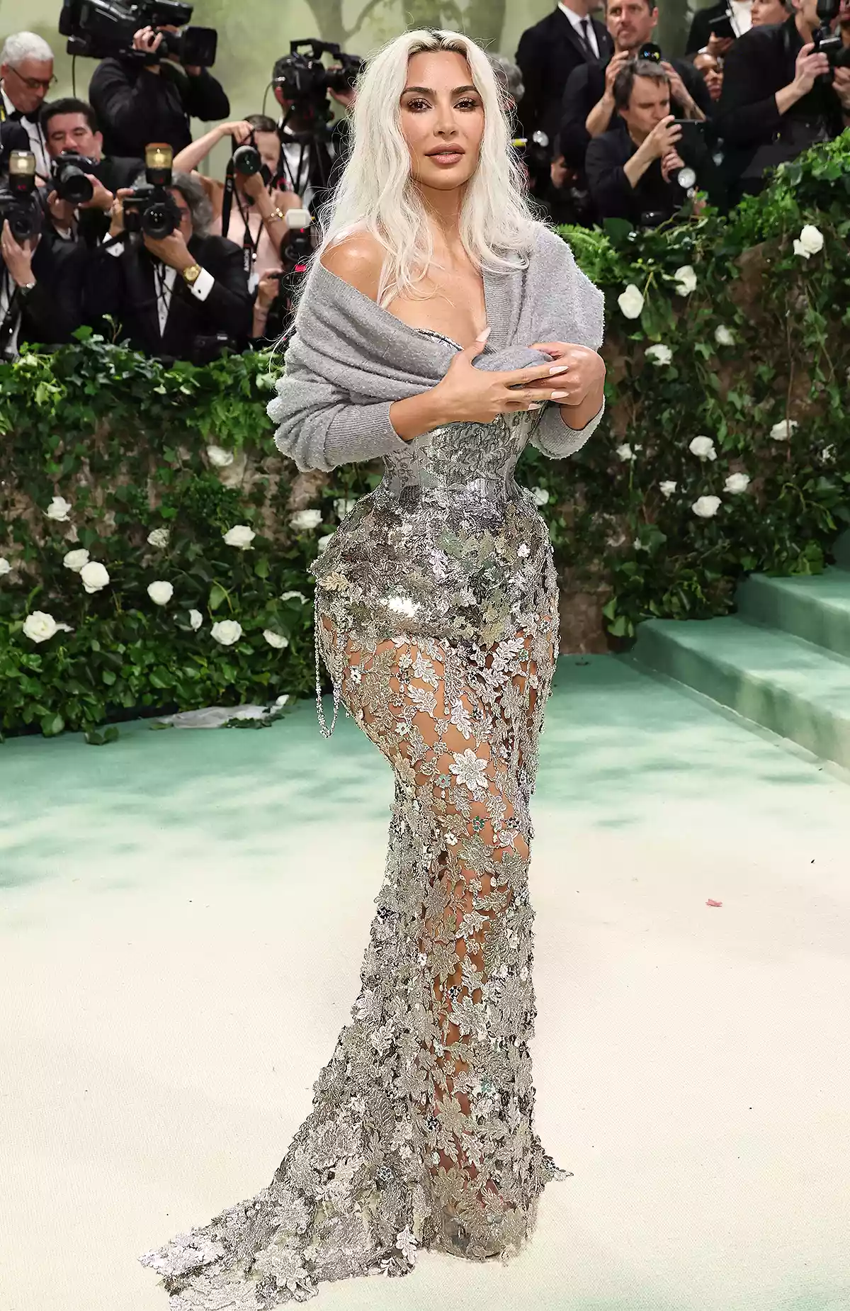 Of course, the most eye-catching part of her ensemble was her silver corset, giving her a drastically tiny waist. At one point, Kardashian appeared to get help from attendees to make her way up the steps as a result of the constraining dress.