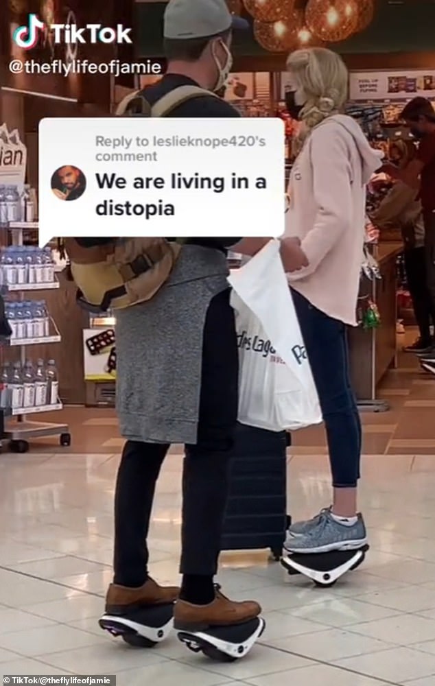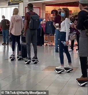 One witness by the name of Jamie was quick to spot the family indulging in a unique affair as they cascaded their way through the airport via their electric roller skates that come at a staggering price tag of $500 per pair.