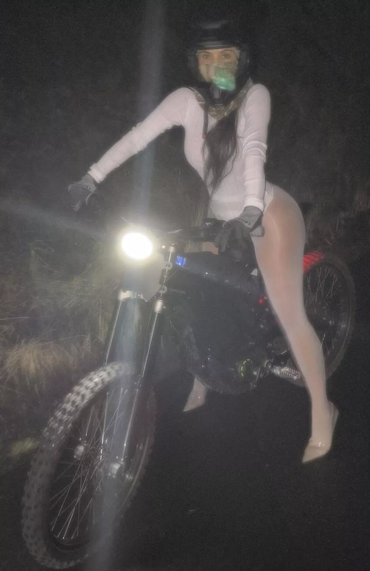 The SKIMS owner seems to be on a mission to click the most saucy pictures of herself while riding in the wilderness. Last week, she was called out for wearing a very fitted top and underwear with boots and a mask covering her face.