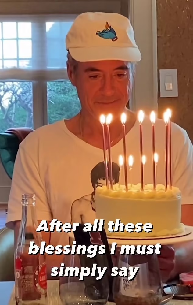 The emotional video also showed Downey blowing out the candles on his cake while his family watched on and sang the Happy Birthday song.