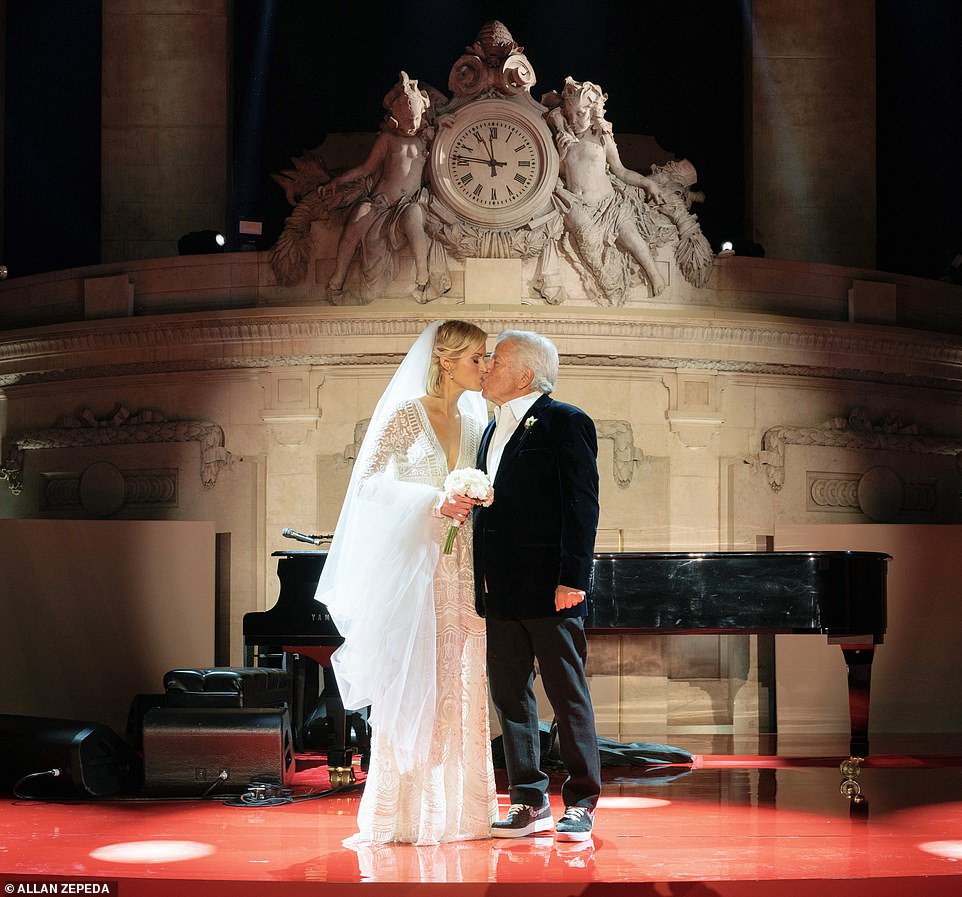 On the other hand, the 81-year-old groom looked dapper in his blue sports jacket that many are accustomed to seeing him in. This was for the nuptial ceremony and came with a pair of his Air Force 1 sneakers.