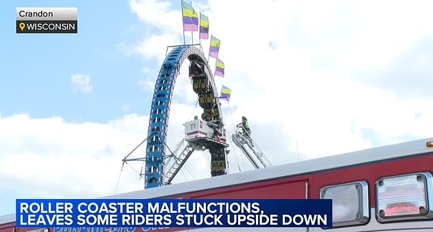 Several people were left hanging upside down after getting trapped on a rollercoaster that malfunctioned during a ride.