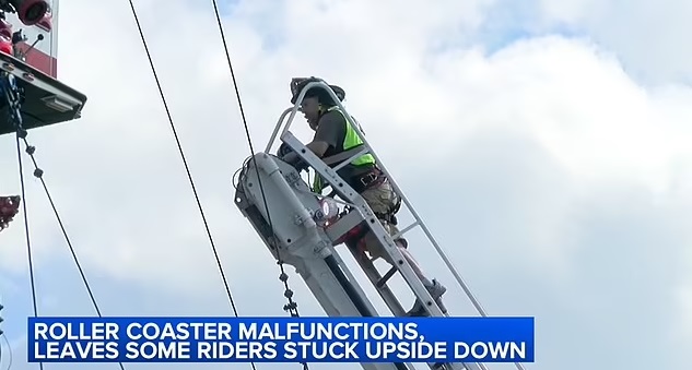 As a result of a mechanical malfunction, the rollercoaster riders were left hanging upside down for a long time before the emergency services arrived at the theme park and rescued them.