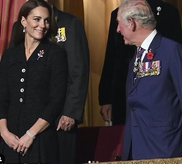 One of the photos shows the Duchess smiling with her father-in-law, Prince Charles, during the Festival of Remembrance Service at the Royal Albert Hall last year.