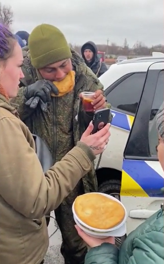 The video was later shared on Twitter with the following caption: “Russian soldiers, surrender, Ukrainian people will feed you, just surrender.”