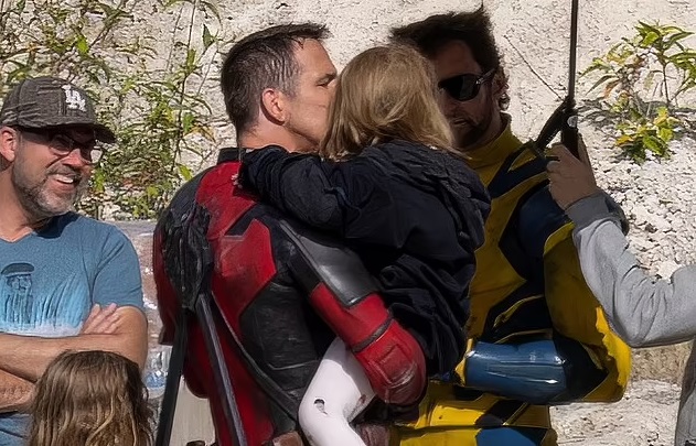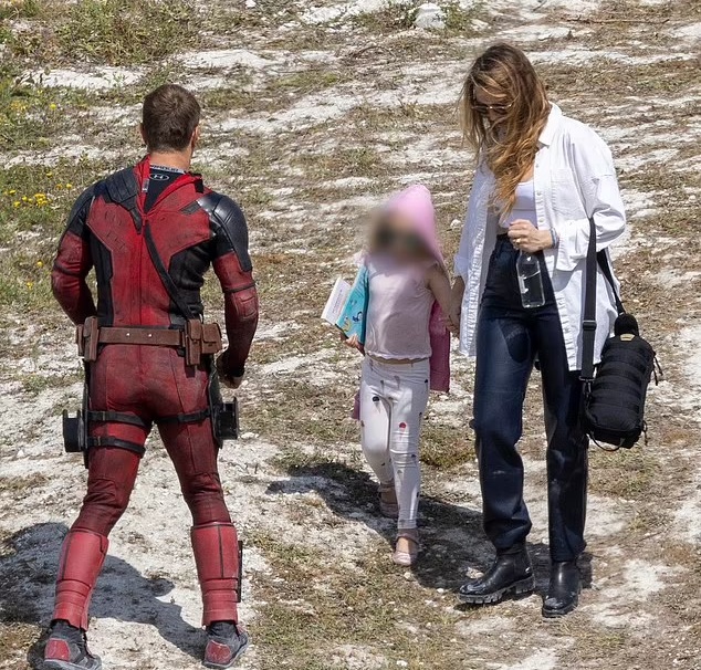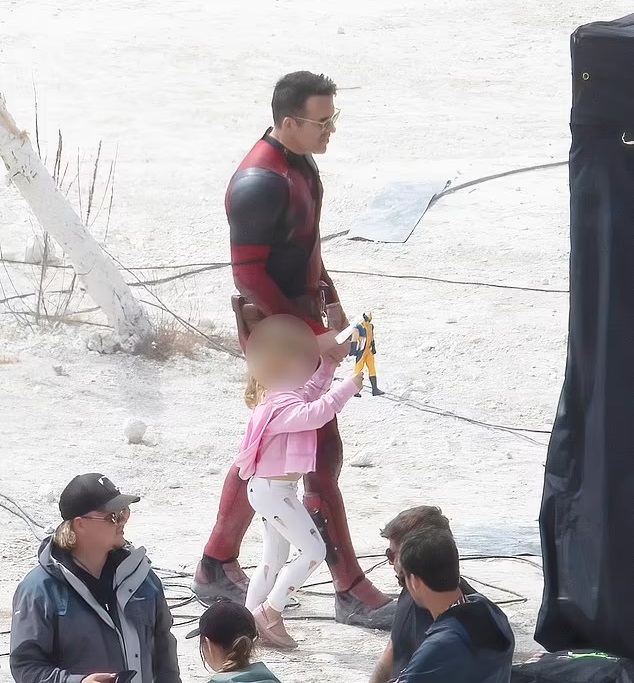 Doting father Ryan Reynolds was seen entertaining his daughters and wife on the set of Deadpool 3.