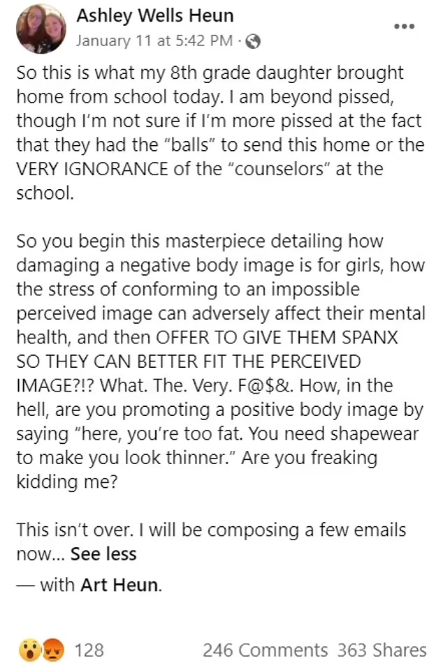 “So this is what my 8th-grade daughter brought home from school today. I am beyond pi**ed, though I’m not sure if I’m more pi**ed at the fact that they had the ‘balls’ to send this home or the VERY IGNORANCE of the ‘counselors’ at the school,” the mother wrote.
