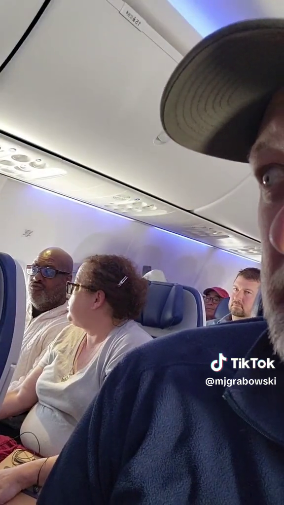 There is a point in time when the air hostess barges in and interrupts them. She tells the passenger to calm down but he refuses to. He further goes on to mention that this behavior is awful and he certainly did not sign up for this.