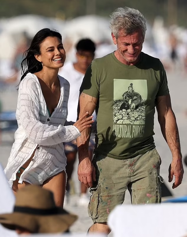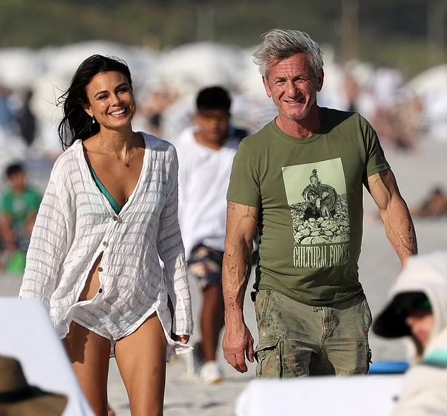 The 63-year-old Hollywood star didn’t seem to have a care in the world as he strolled down the beach in Miami with Peruvian-Australian actress Nathalie Kelley, 39.