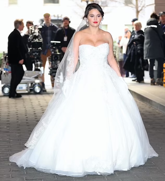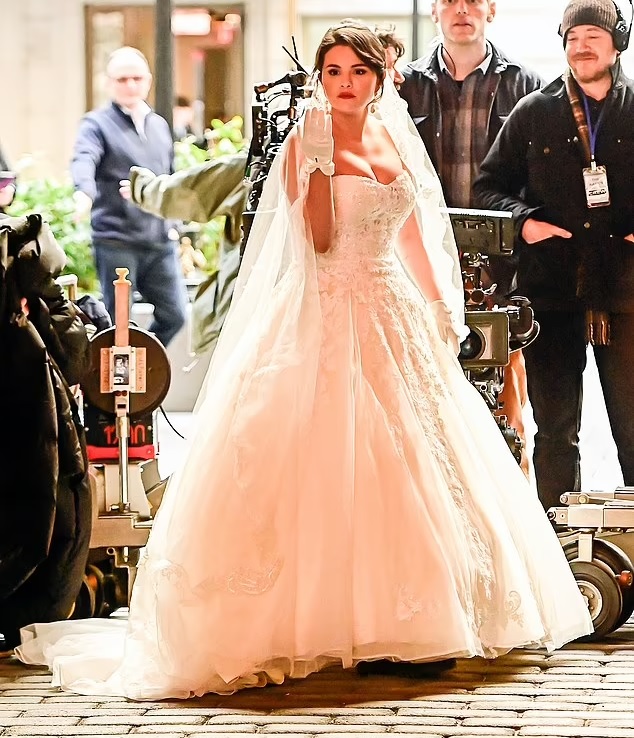 Selena Gomez looked stunning as she donned a wedding dress and transformed into a picture-perfect bride.