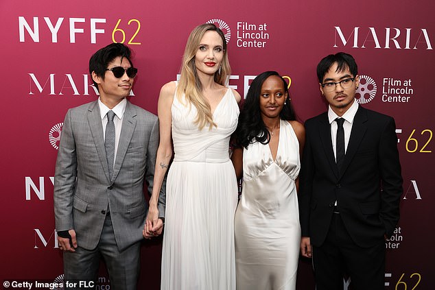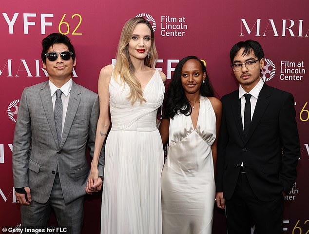 The event was held at the 62nd New York Film Festival on Sunday. This is where the stunning actress was accompanied by her three children named Zahara, Maddox, and Pax.