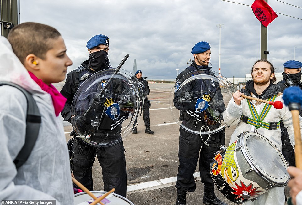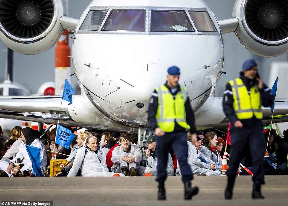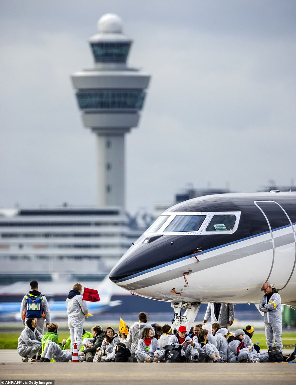 The activists in Amsterdam were seen donning white-toned overalls and even stormed an area holding private jets at Schiphol Airport.