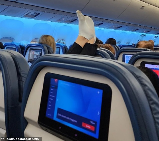 A passenger aboard a Delta Airlines flight is going viral online after she opted to put up her dirty and smelly feet on another passenger’s headrest.