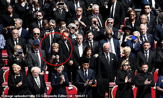 A huge number of dignitaries couldn’t resist taking out their phones to take pictures and videos of the late Pope’s humble wooden casket as it was carried back towards St. Peter’s Basilica.