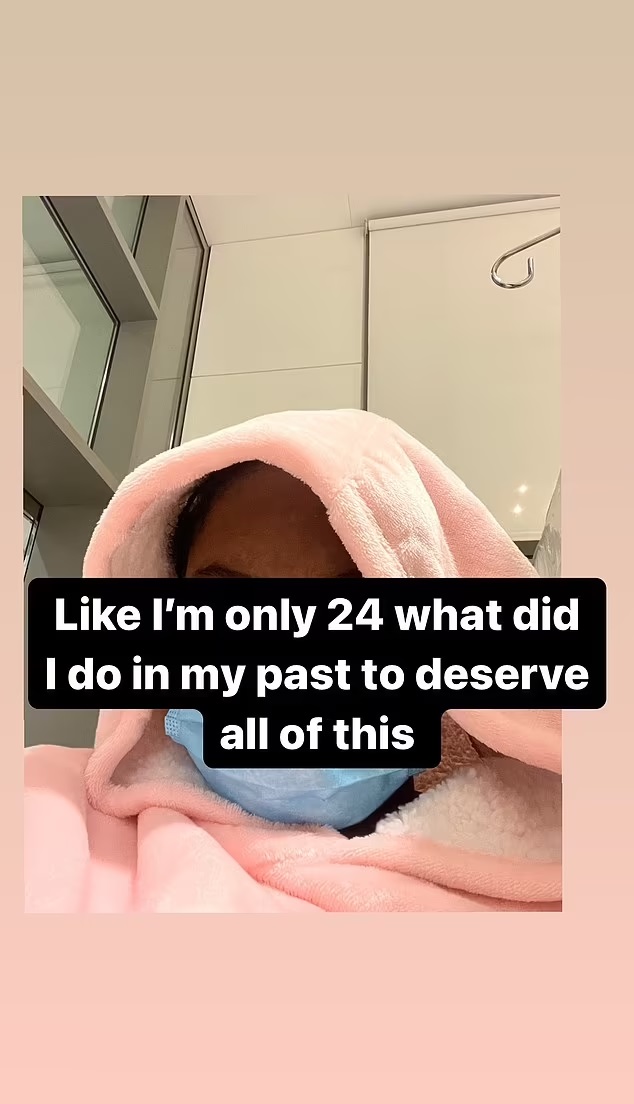“I had a severe stroke this am. I started breaking down crying when they told me,” she shared. “Like I’m only 24 what did I do in my past to deserve all of this.”