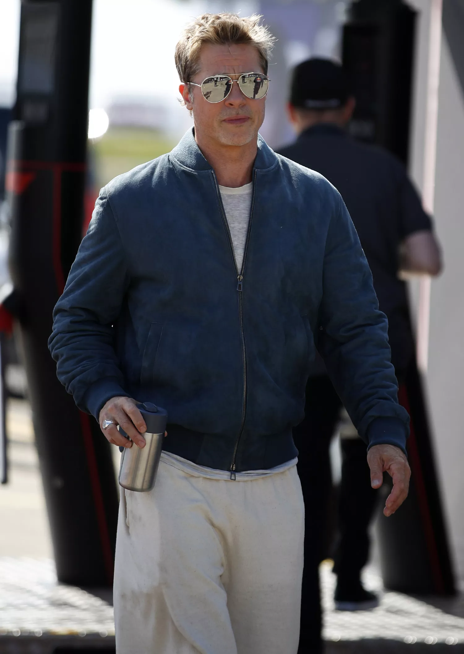 The Babylon actor was seen donning metal shades that gave off the mirrored effect while his hair was styled in a tousled manner. Meanwhile, his attire comprised of a suave blue jacket, a grey tee, and some well-fitted cargo pants.