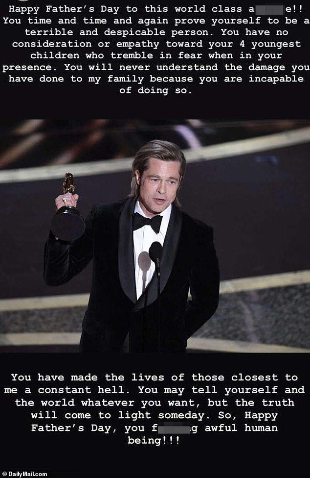 But Pitt’s adopted son Pax did not hold back, calling his dad a world-class a** hole that instilled so much fear in his young children that they would tremble when they saw him.