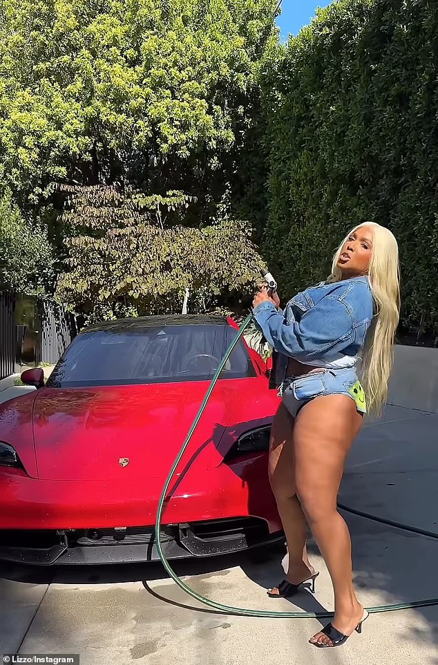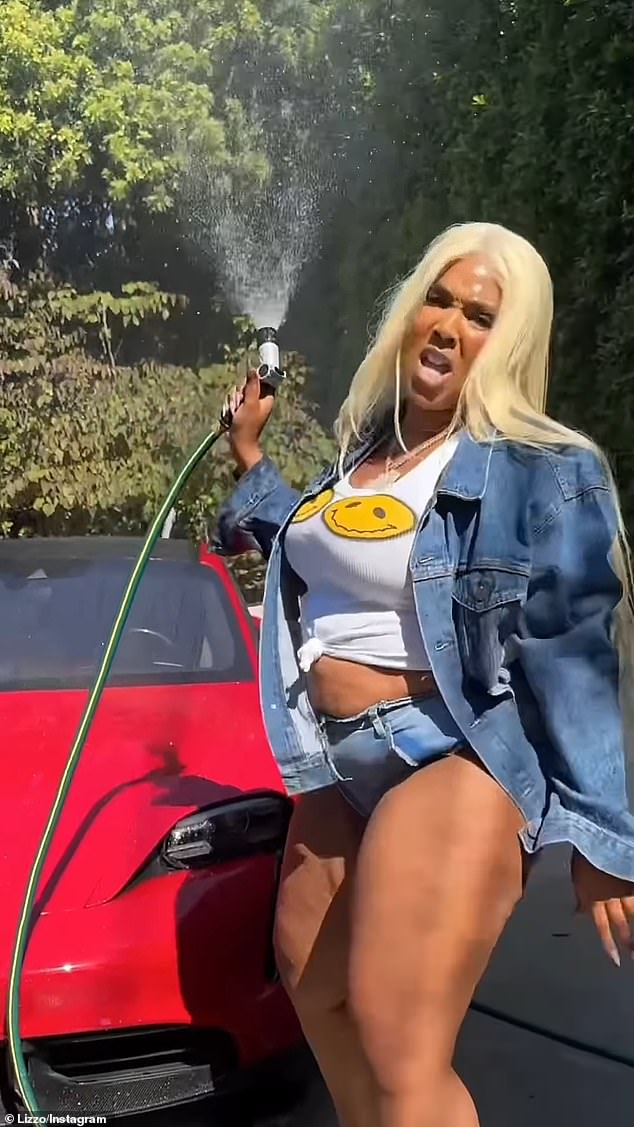 The four-time Grammy winner who rocked a waist-length platinum blonde wig even twerked up a storm in her mini shorts that put her thighs and curves on display.