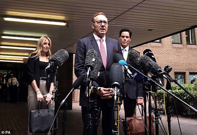 Actor Kevin Spacey was spotted drinking while celebrating his acquittal in London recently.