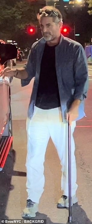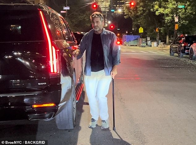 The 49-year-old star was seen hobbling while arriving for his date night on the town inside the West Village neighborhood of New York City alongside his 56-year-old lady love on Monday.