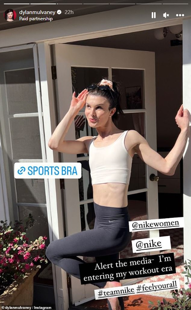 Mulvaney can be seen donning black tights and a white sports bra while working out in her home. The hashtags team Nike are very evident as she mentions, ‘Alert the media because I am entering my workout era’.