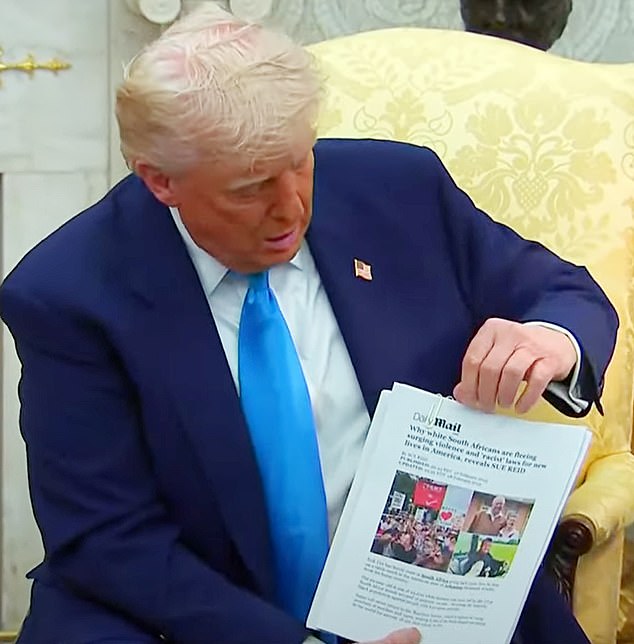 But if that was not enough, the President put on an alarming display at the Oval Office, where he displayed clips to South African leader Cyril Ramaphosa that provided evidence of white genocide in the country.
