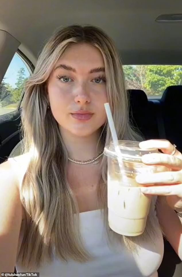 During the short duration video clip, Welcher can be seen sipping on her cup of cold coffee while going into detail about her daily grind.