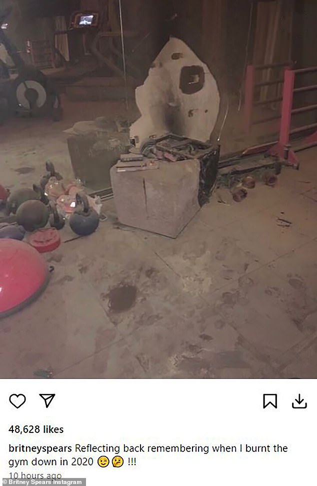 The striking picture had all sorts of objects burned down to a crisp. This included the dumbells, the training equipment, and so much more. Everything was covered in dust and ashes, Britney recalled.