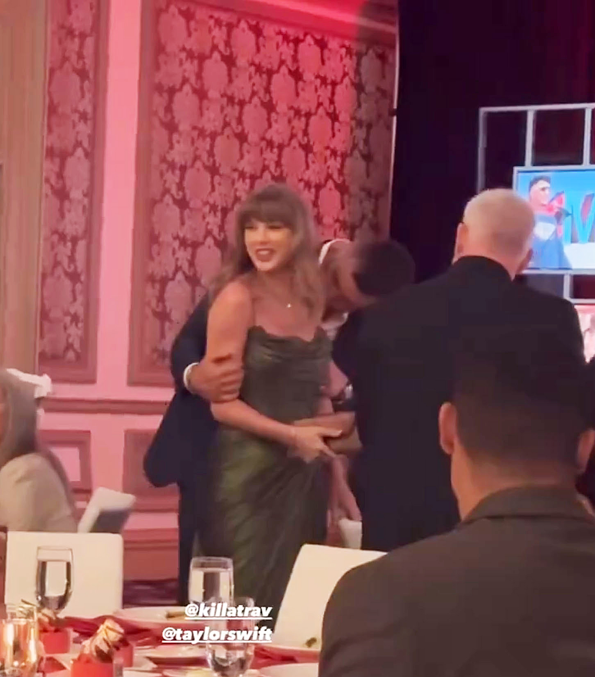 Travis Kelce is being slammed online after being pictured smothering his lady love and songstress Taylor Swift with kisses at a formal private event.