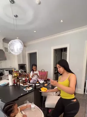 The pictures showed Cardi B donning a tanktop with tights as she gets into her groove at the gym. The star says that on most days she is left with no choice but to take her little daughter along with her because that’s how long it takes her to work out and stretch as a whole.