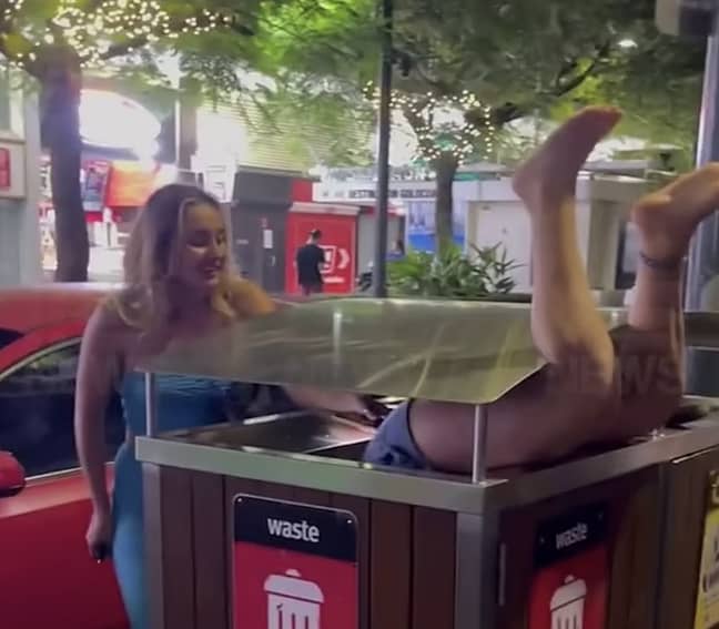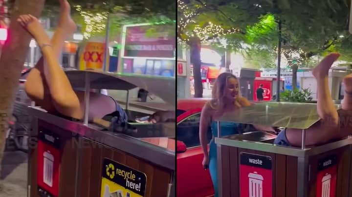 A woman is making headlines after having a wild night out around town. And it ended up in her getting stuck inside a garbage can.