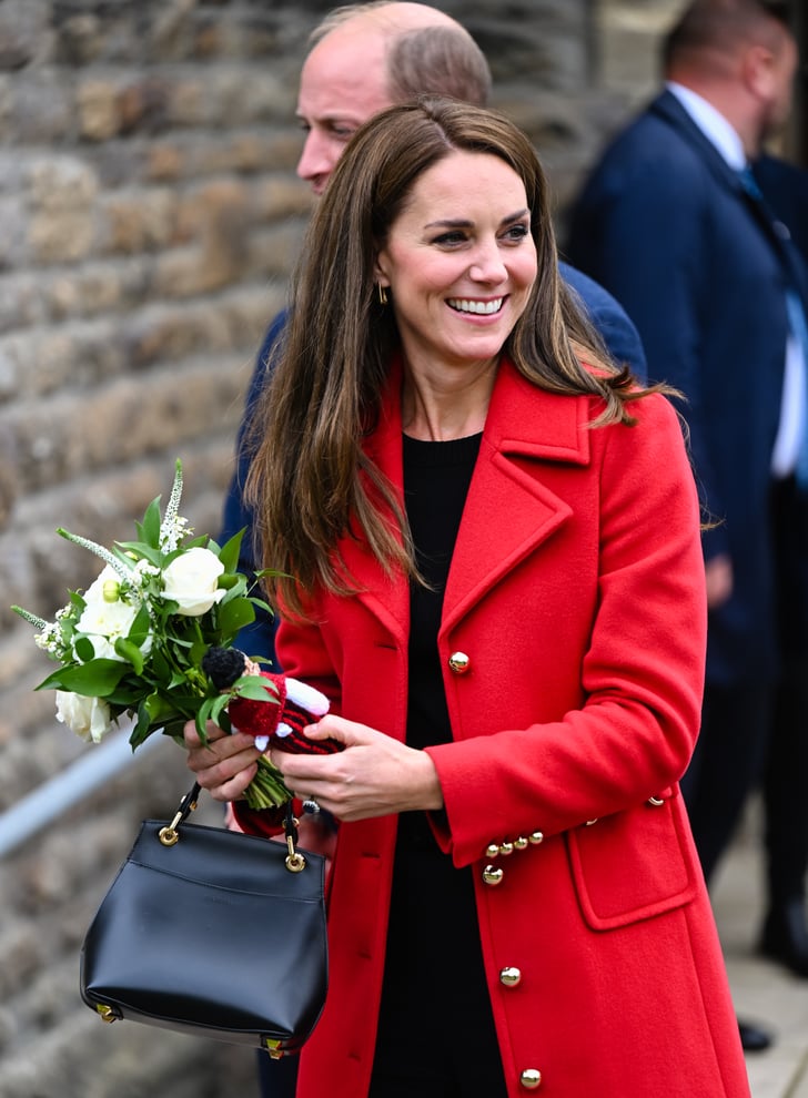 Kate Middleton looked stunning yesterday in red during her public visit to Wales, alongside Prince William.