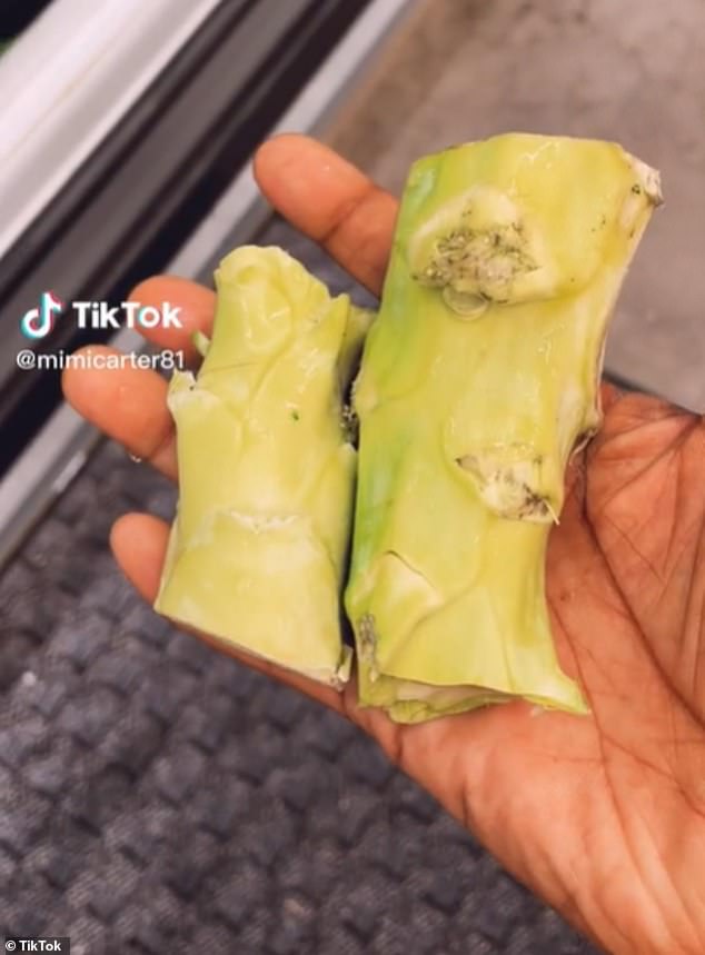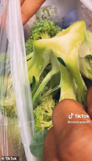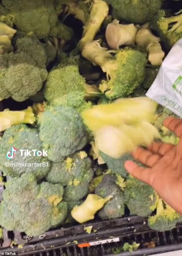 This story is about a 41-year-old shopper from Florida named Meia Carter who posted a new TikTok video featuring herself snapping off the stems of some broccoli and then tossing them back into a giant pile before checking out at the counter.