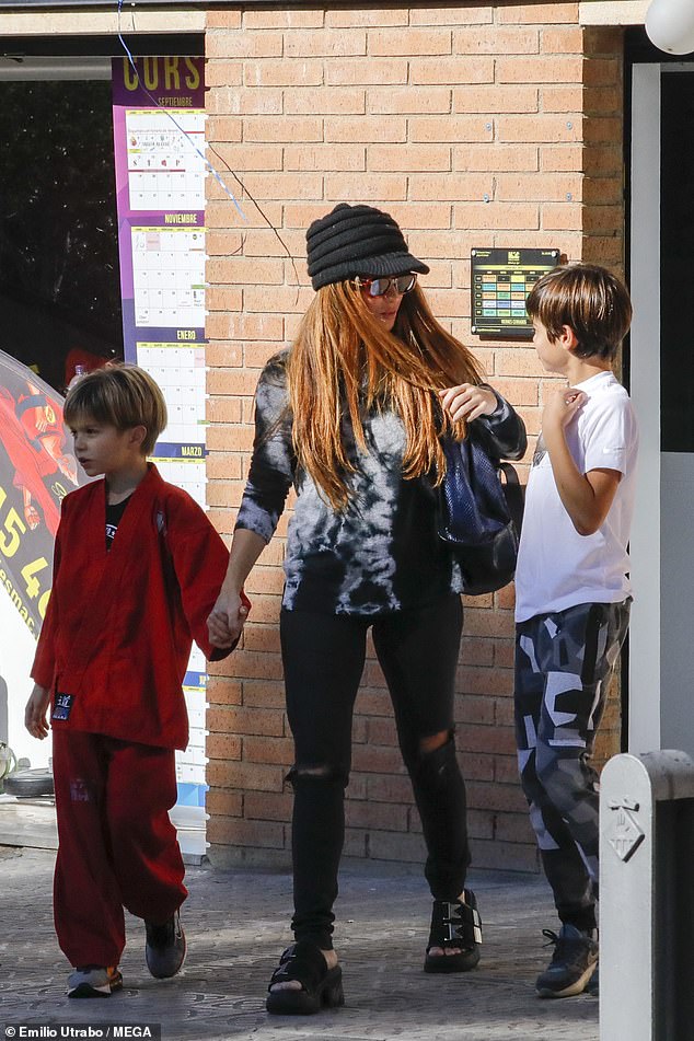 The celeb was spotted in her casual attire as she made her way inside with her two little boys by her side.